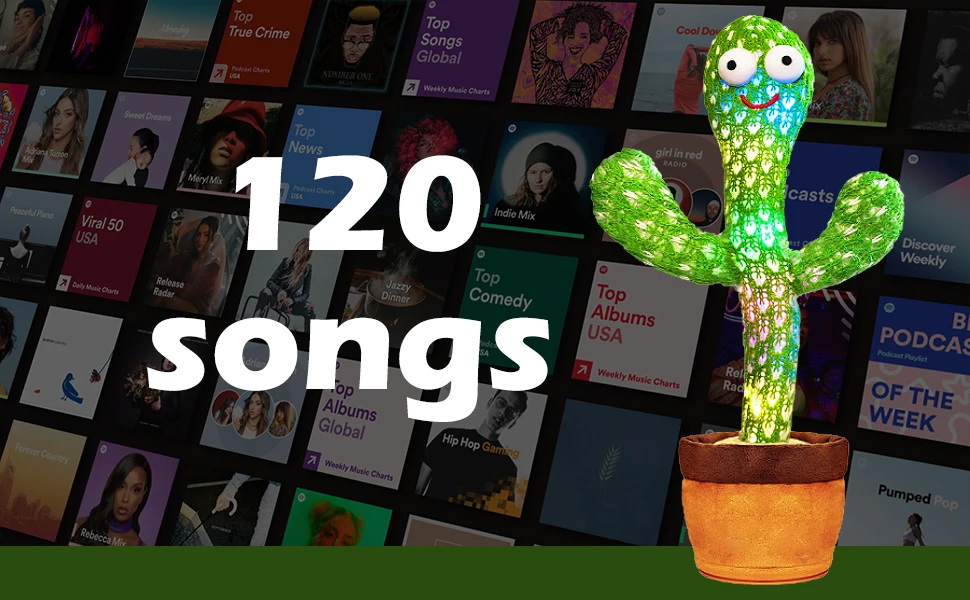 【120 Songs on Loop】The cactus toy comes with 120 songs in English, including nursery rhymes and hits. When in the battery, the cactus sings, dances and glows. Let your child dance to the music and cactus. This healthy, positive interaction lends itself to a child's education.